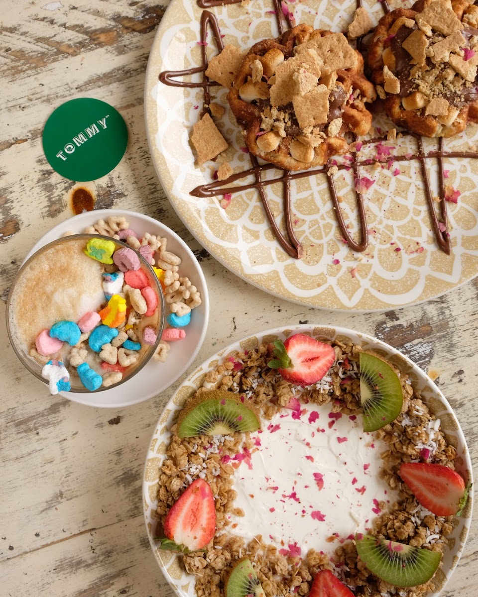 Tommy Café serves a variety of coffees that are meticulously crafted to awaken your senses. Enjoy a cup of their signature Lucky Charms Latte, celebrated for its bold flavor and enchanting presentation. If you're in the mood for something sweet, their array of desserts, including decadent cheesecakes, chocolate-dipped treats, and their famous dessert pizzas, are sure to delight. The ice cream selection is noteworthy, featuring an extensive variety of dip options that elevate every scoop—a real treat for ice cream lovers!